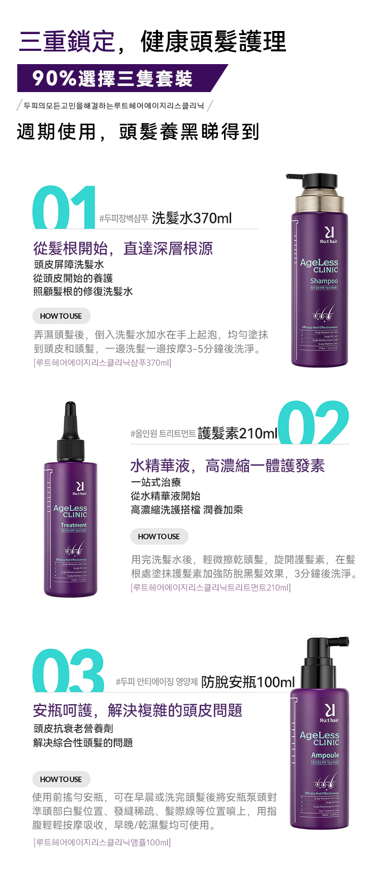 洗髮水/護髮素/防脫安瓶精華三重加固,維持健康頭髮形態